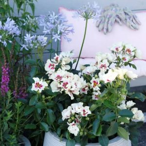 SEE YOU® in purple е роза персика с лилаво „око“. Храстът достига размери 90х60см, листата са тъмни и лъскави, болестната устойчивост отлична. Сортът е подходящ за отглеждане в саксия. Направете си колекция от еко-розички, като засадите в комбинация представителките на See you® колекцията.